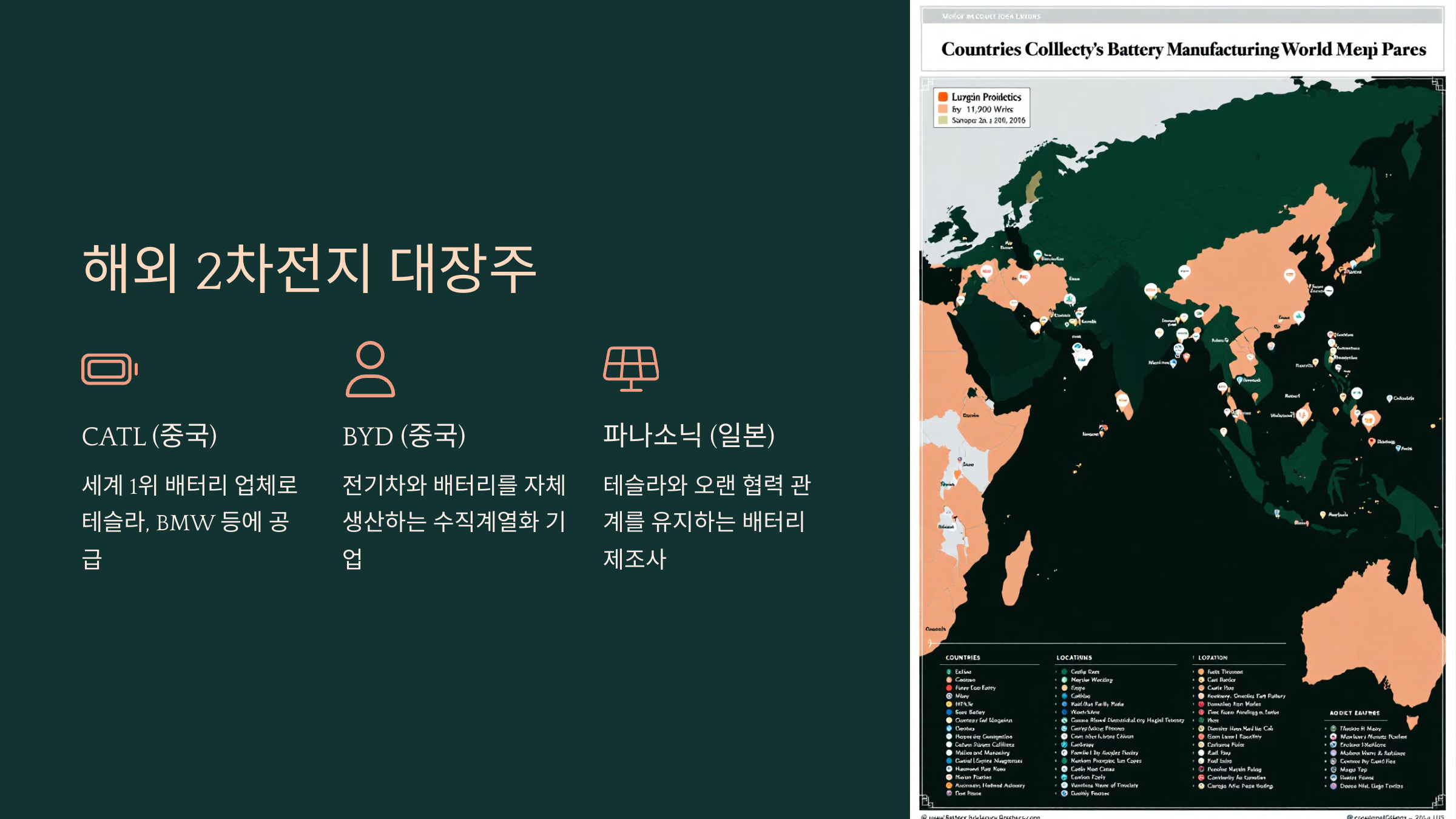 🌍 글로벌 2차전지 시장에서는 중국, 일본, 미국의 기업들도 강력한 입지를 다지고 있어요. 특히 중국의 CATL과 BYD, 일본의 파나소닉은 전기차 배터리 시장을 선도하고 있죠.