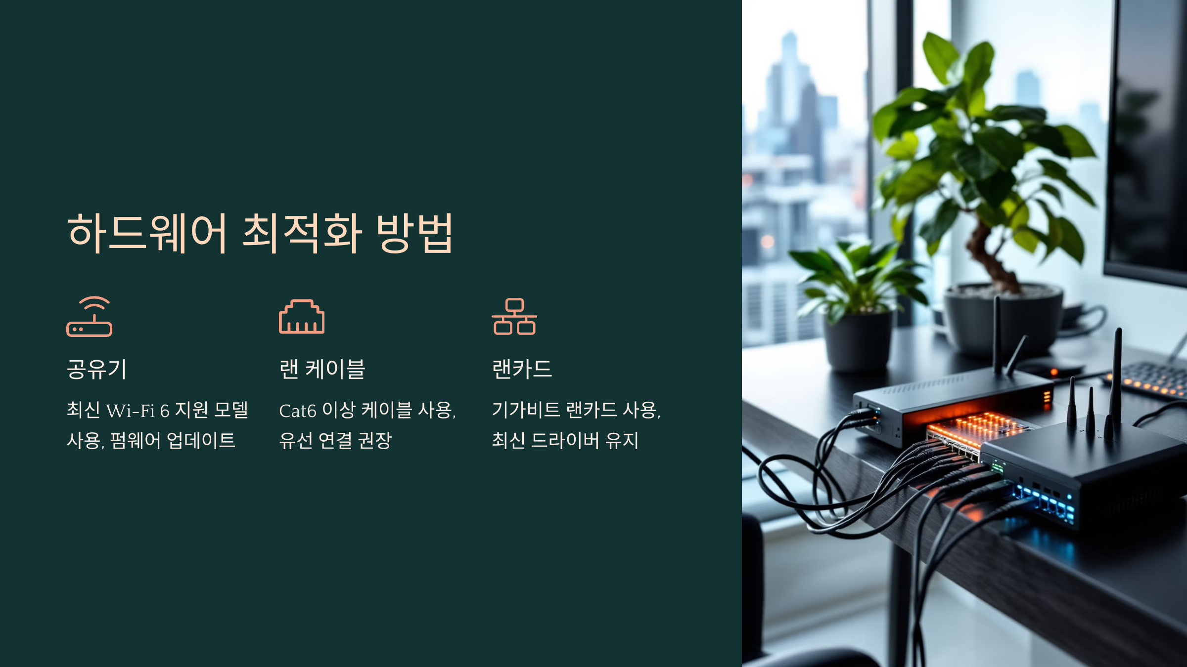인터넷 속도를 높이려면 우선 하드웨어가 제대로 작동하는지 확인해야 해요. 아무리 빠른 요금제를 사용해도 공유기나 랜카드가 문제라면 속도가 제대로 나오지 않아요. 하드웨어를 점검하고 최적화하는 방법을 살펴볼게요!