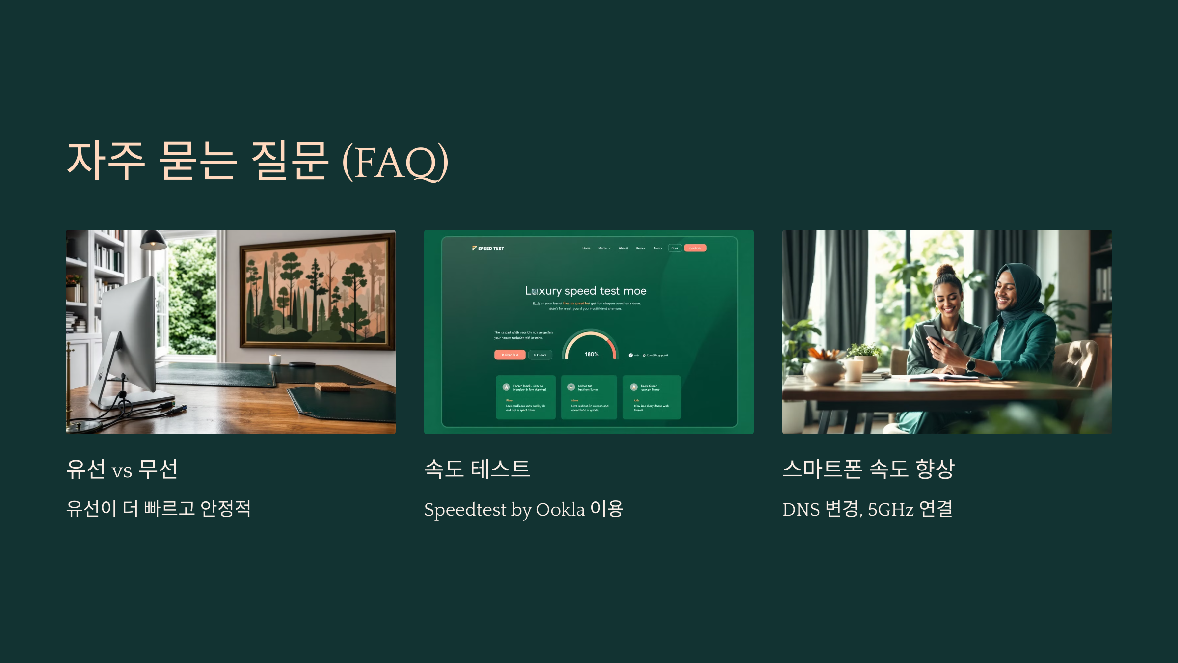 A8. 네! DNS 변경, 데이터 절약 모드 해제, 5GHz 와이파이 연결, 백그라운드 앱 종료 등으로 속도를 높일 수 있어요.