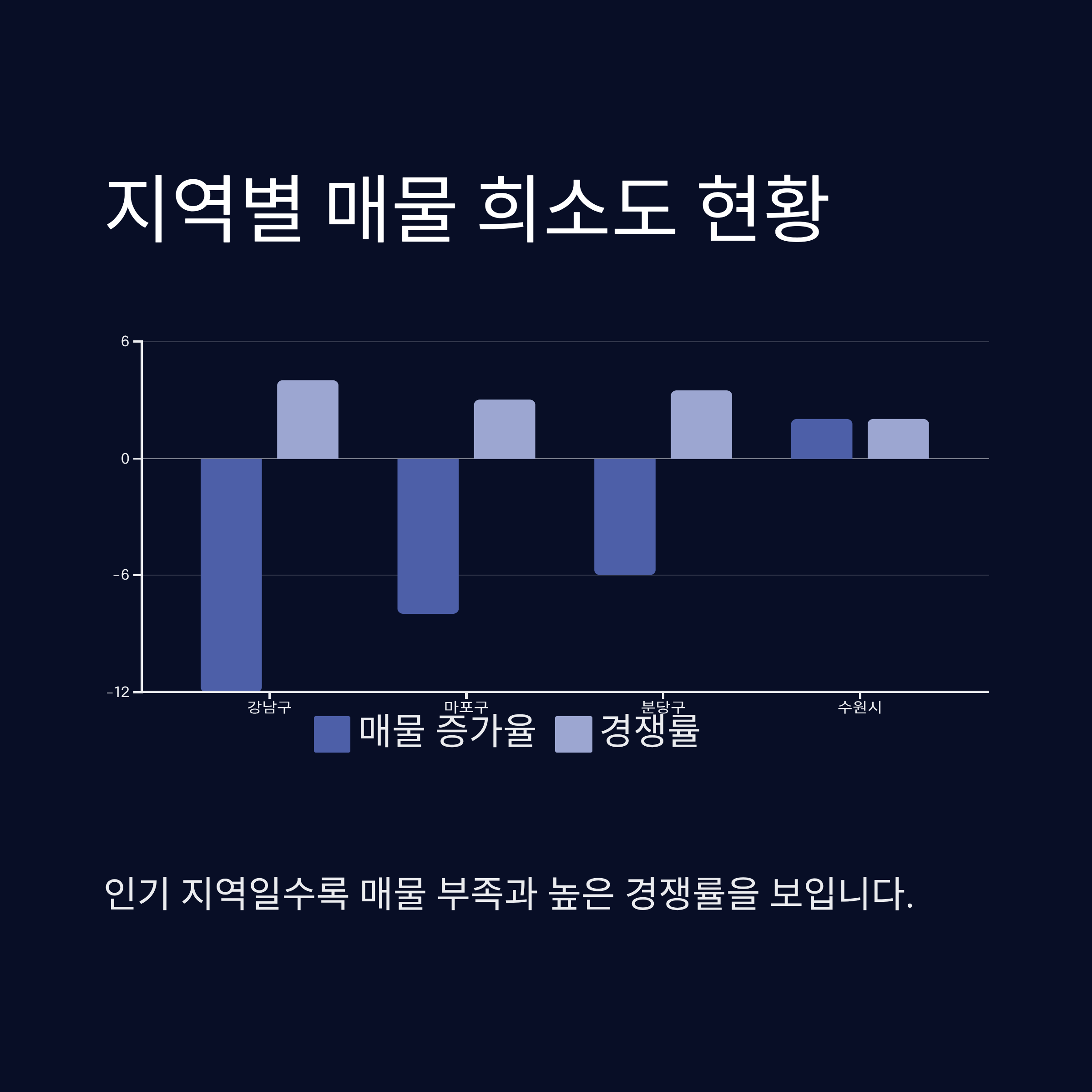 예를 들어 서울 강남 3구나, 판교, 마포 같은 지역은 학군, 교통, 직장 접근성이 좋기 때문에 항상 사람들이 살고 싶어 해요. 그런데 보유자들이 물건을 내놓지 않으면 아무리 원해도 매물을 볼 수 없는 거죠.