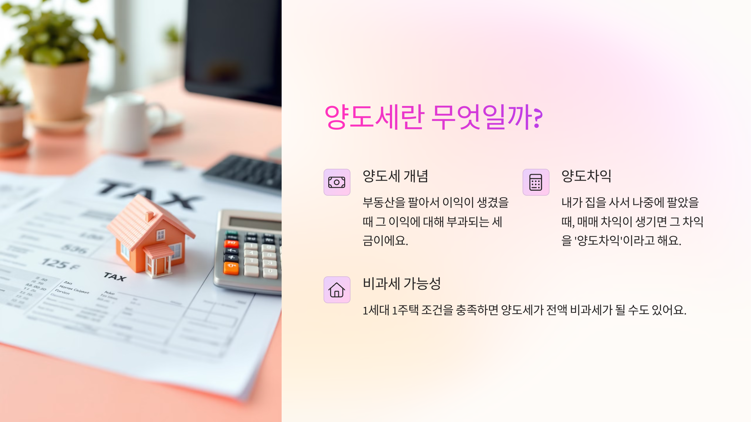 이번 글에서는 복잡해 보이는 양도소득세를 누구나 이해할 수 있도록 차근차근 정리해볼게요.