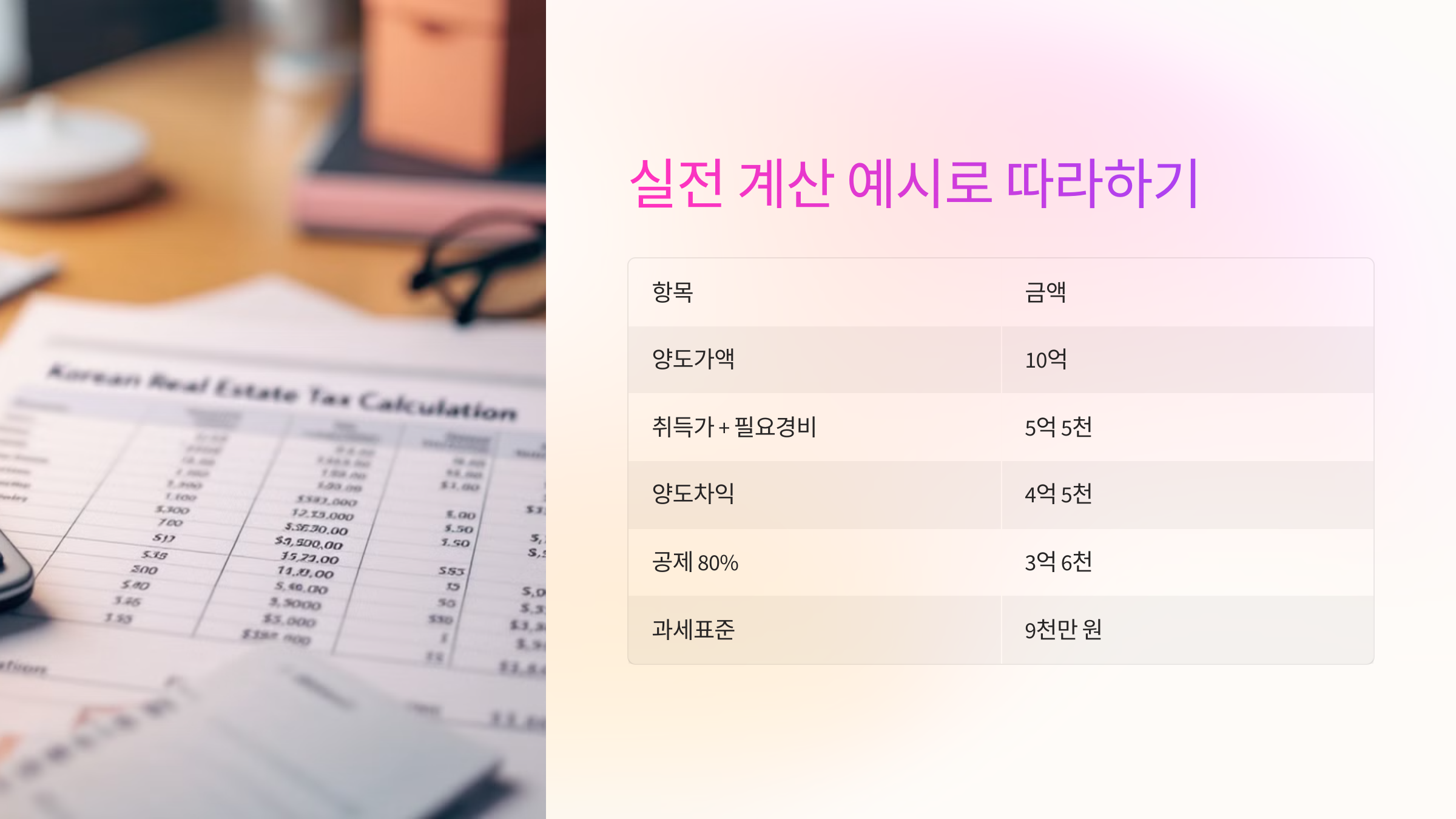 양도세 계산은 사실 수식이 정해져 있어요. 이 공식만 기억하면 누구나 직접 계산할 수 있어요.