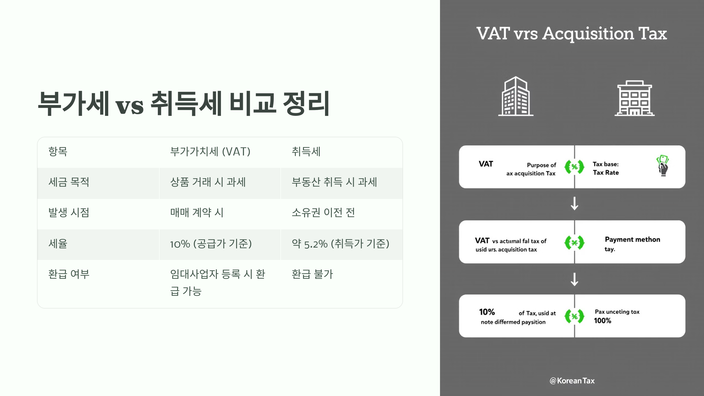 ✅ 정리하면, 부가세는 상품으로서의 거래세, 취득세는 소유에 대한 세금이에요. 부가세는 환급 가능한 경우도 있지만, 취득세는 무조건 내야 하고 돌려받을 수 없어요!