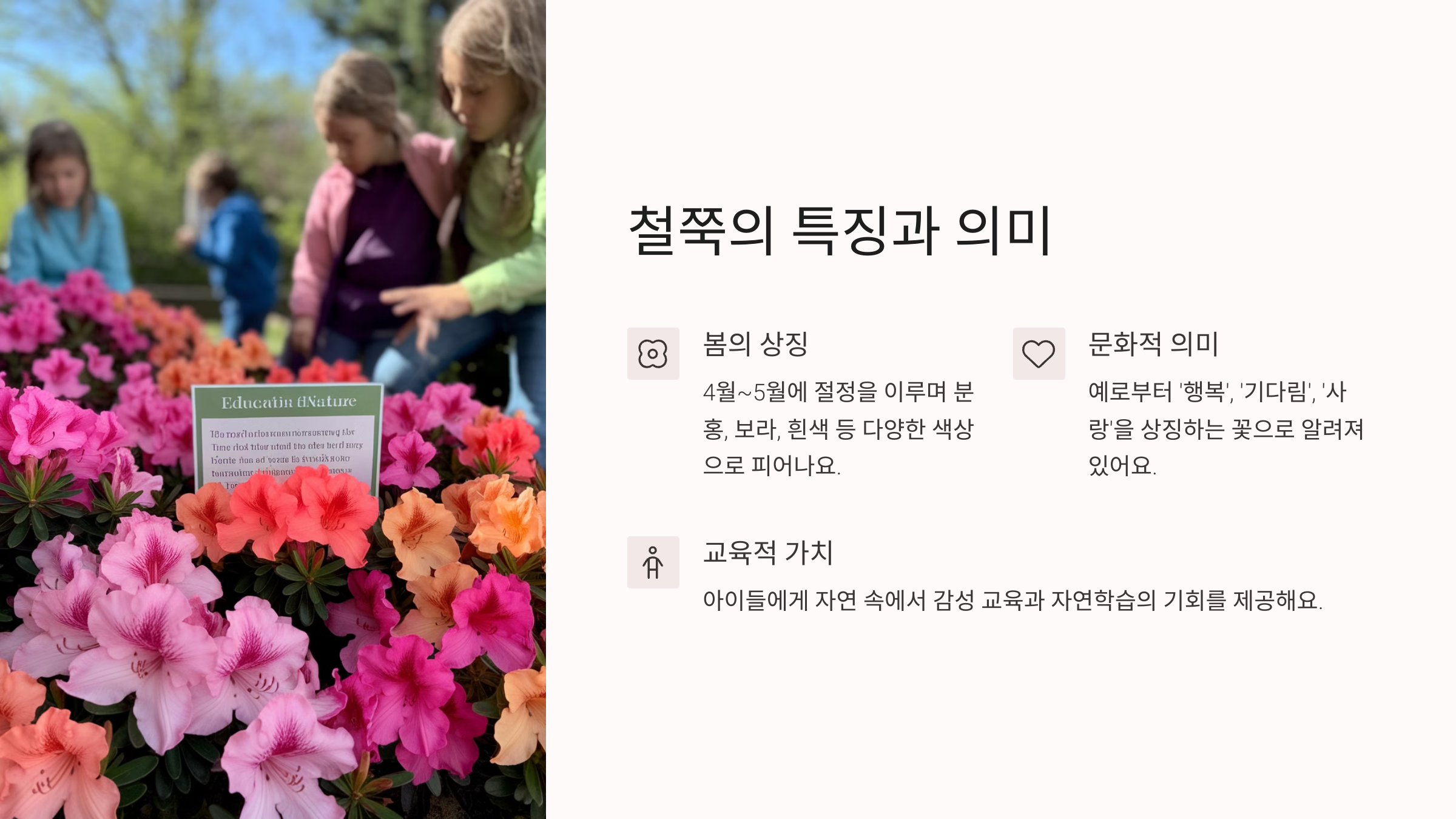 특히 철쭉은 우리나라 전통 문화에서도 중요한 의미를 가져요. 예로부터 '행복', '기다림', '사랑'을 상징하는 꽃으로 알려져 있어 특별한 봄맞이 상징으로 사용되었답니다.