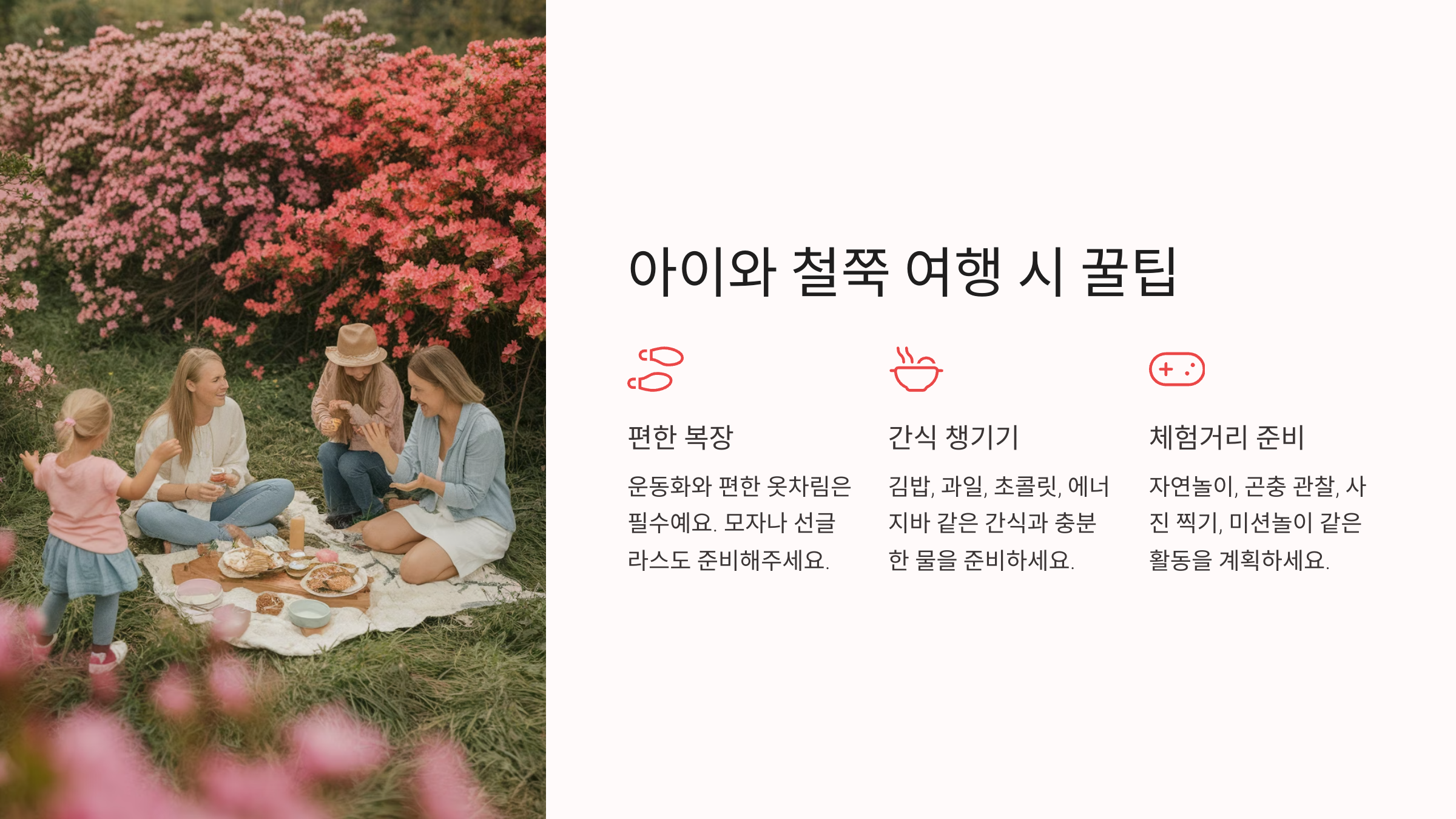 그럼 이제 아이와 철쭉 여행 시 꼭 알아두면 좋은 꿀팁과 준비물을 알려드릴게요! 가족 나들이 성공을 위한 필수 정보니까 끝까지 읽어보세요!