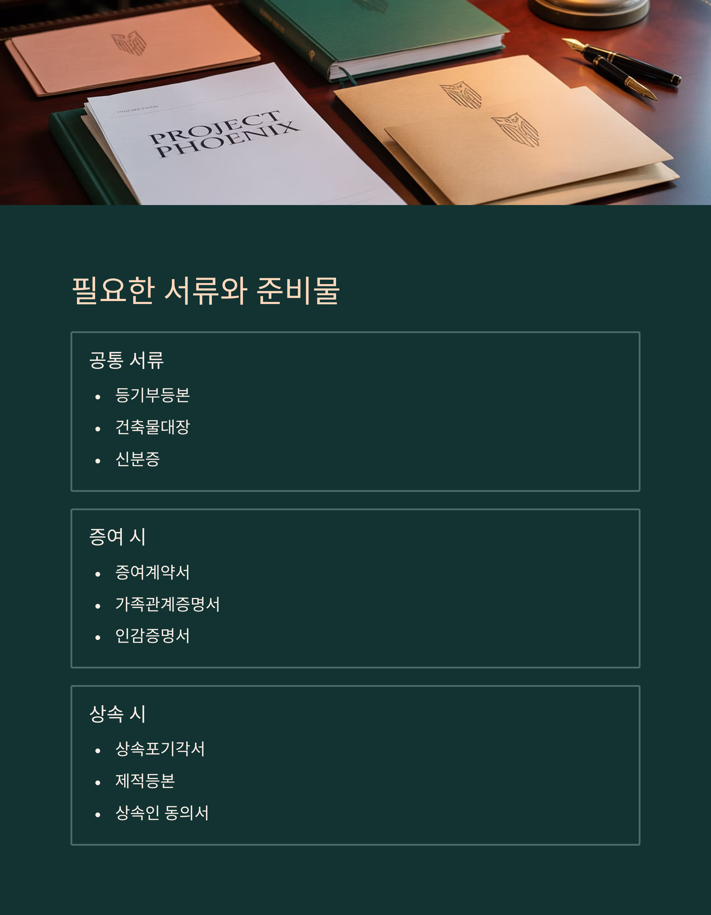 | 가족관계증명서 | 증여, 상속 | 정부24에서 발급 가능 |