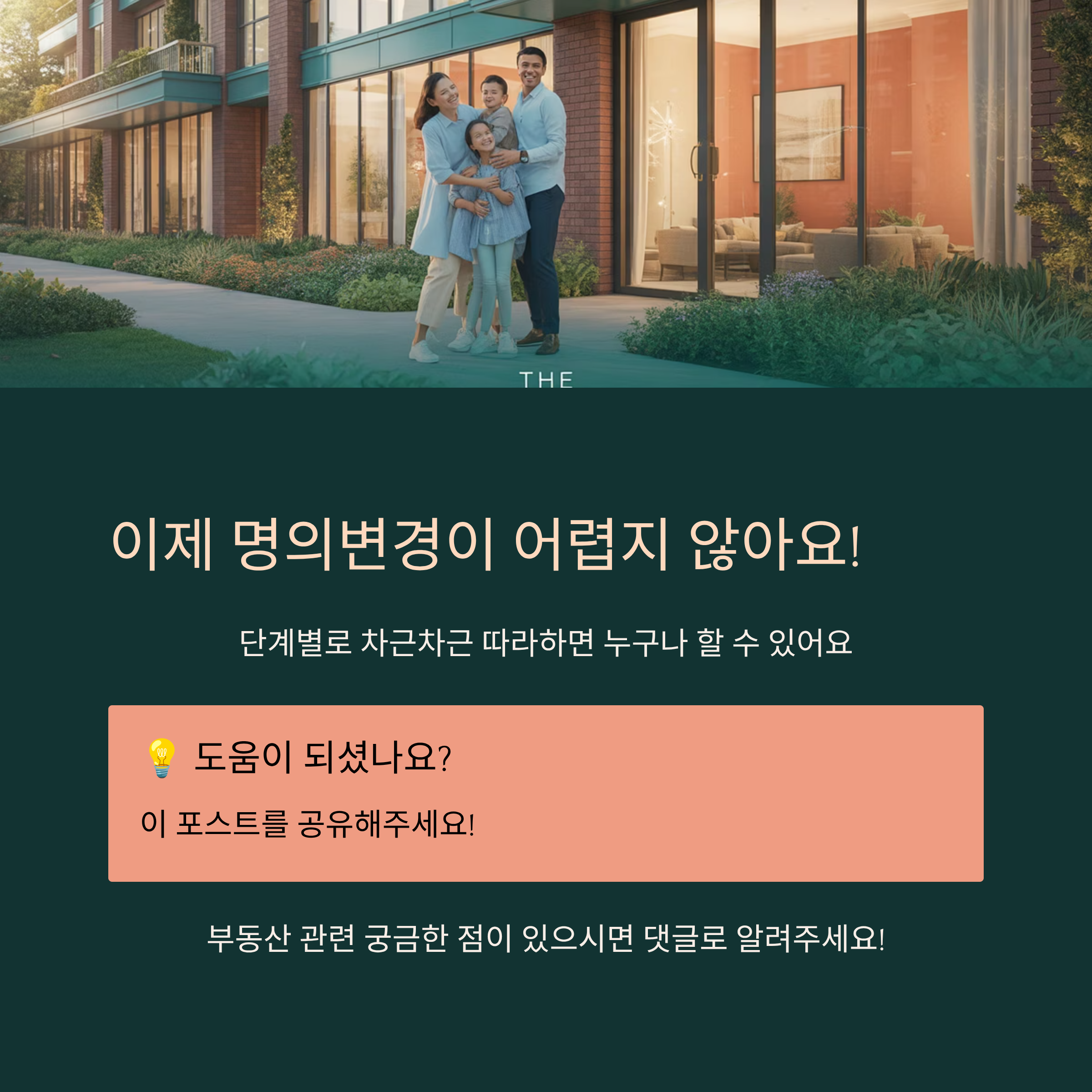 🏠 아파트 명의변경은 가족 간 증여, 이혼, 상속, 매매 등 다양한 이유로 진행돼요. 하지만 처음 해보는 분들에겐 꽤 복잡하게 느껴질 수 있죠.