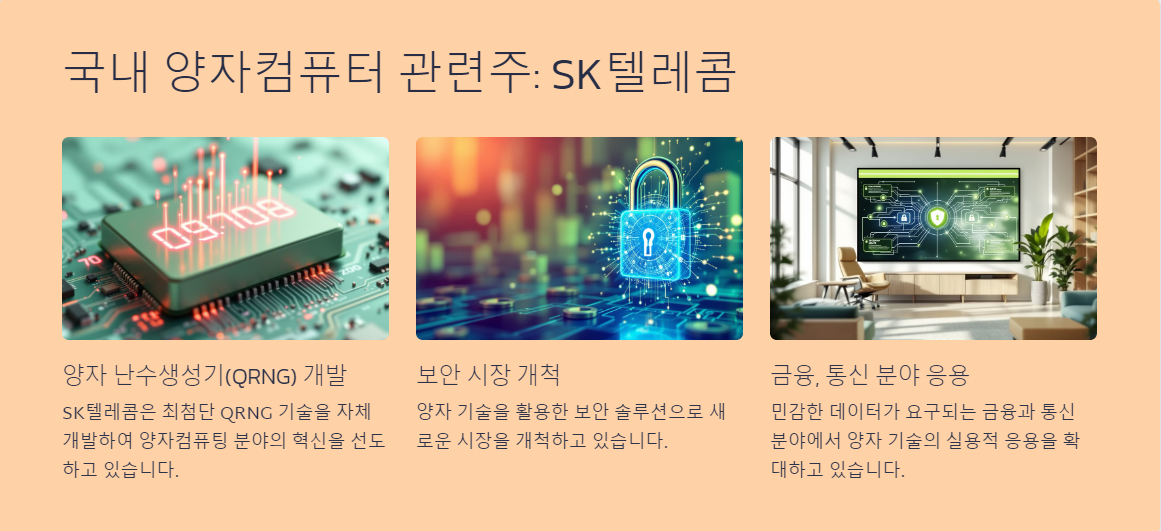 SK텔레콤은 양자 난수생성기(QRNG) 개발을 통해 보안 시장에서 새로운 길을 개척하고 있습니다. 이 기술은 금융, 통신 등 민감한 데이터가 요구되는 분야에서 응용 가능성이 높습니다.