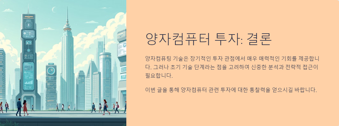양자컴퓨팅 기술은 장기적인 투자 관점에서 매우 매력적인 기회를 제공하지만, 초기 기술 단계라는 점을 고려하여 신중한 분석과 전략적 접근이 필요합니다. 이번 글을 통해 양자컴퓨터 관련 투자에 대한 통찰력을 얻으시길 바랍니다.