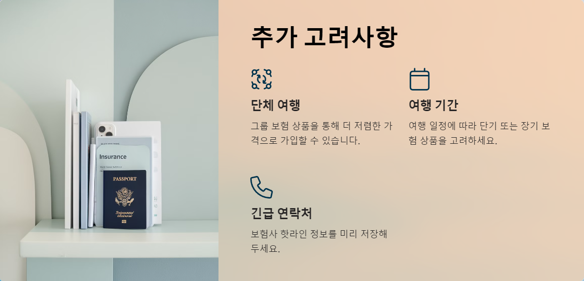 단체 여행 시 그룹 보험 상품을 선택하면 더 저렴한 가격으로 가입할 수 있으며, 일정에 따라 단기 또는 장기 보험을 선택해 비용을 절감할 수 있습니다.