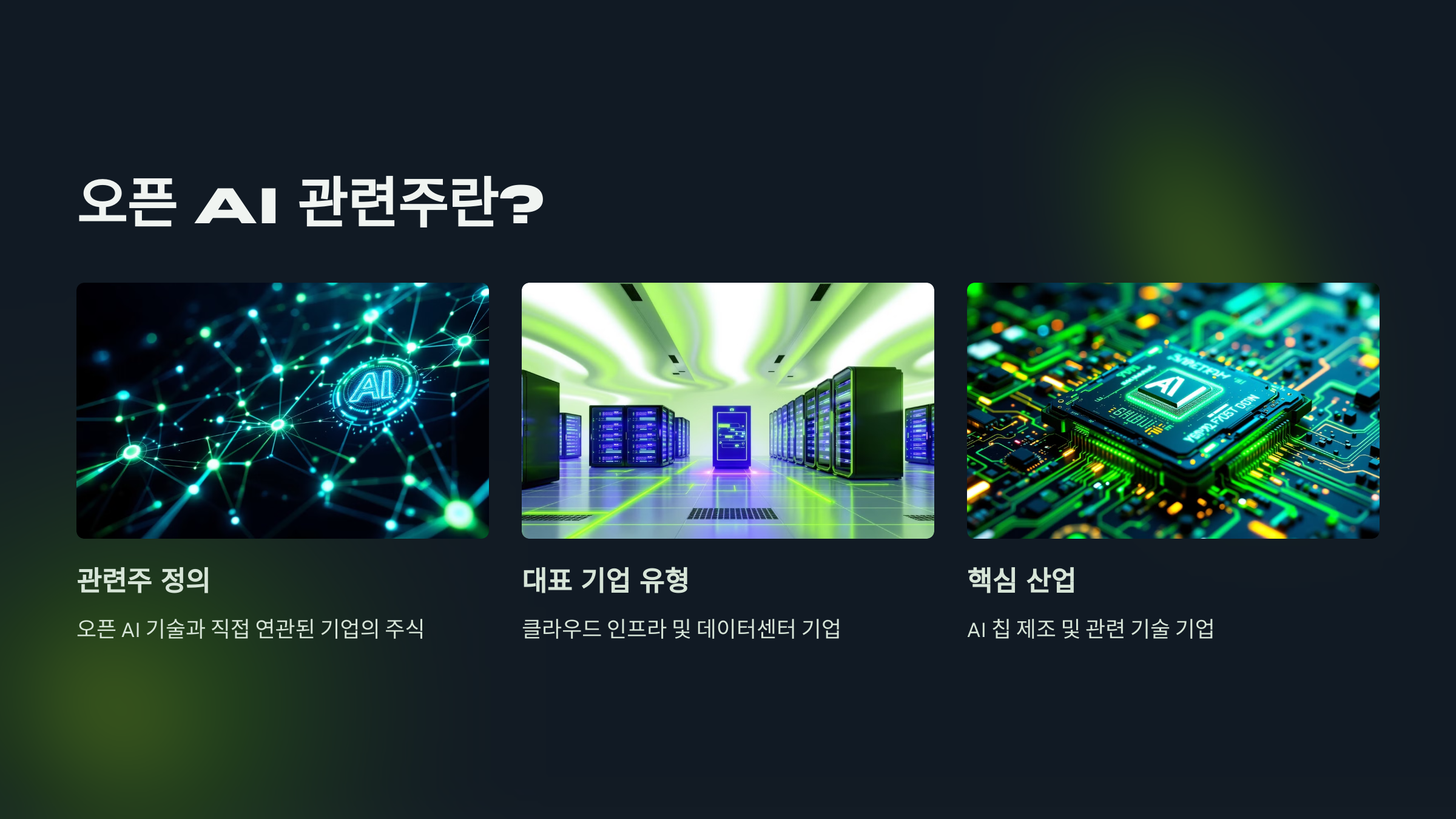 이 외에도 AI 솔루션 기업이나 데이터센터를 운영하는 기업들 역시 오픈 AI 관련주로 분류될 수 있어요. 국내 시장에서도 AI 기술을 중심으로 한 기업들의 성장 가능성이 매우 높답니다.