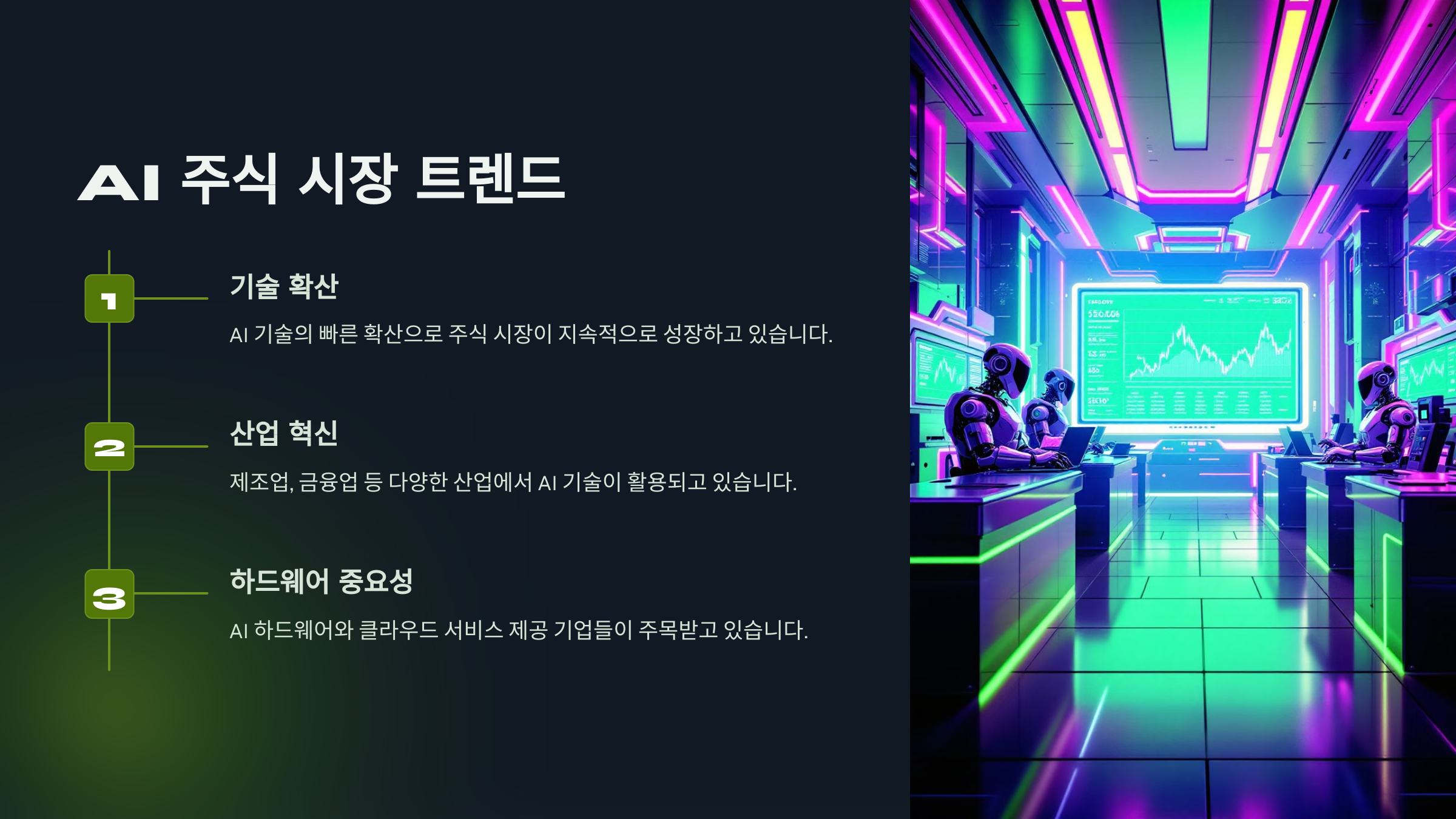 AI 관련 주식 시장은 혁신적인 기술의 빠른 확산과 함께 지속적으로 성장하고 있어요. 최근 몇 년간 AI 기술에 대한 투자 열기가 뜨거워지면서, 많은 기업들이 AI 기술을 중심으로 사업 구조를 재편하고 있답니다.