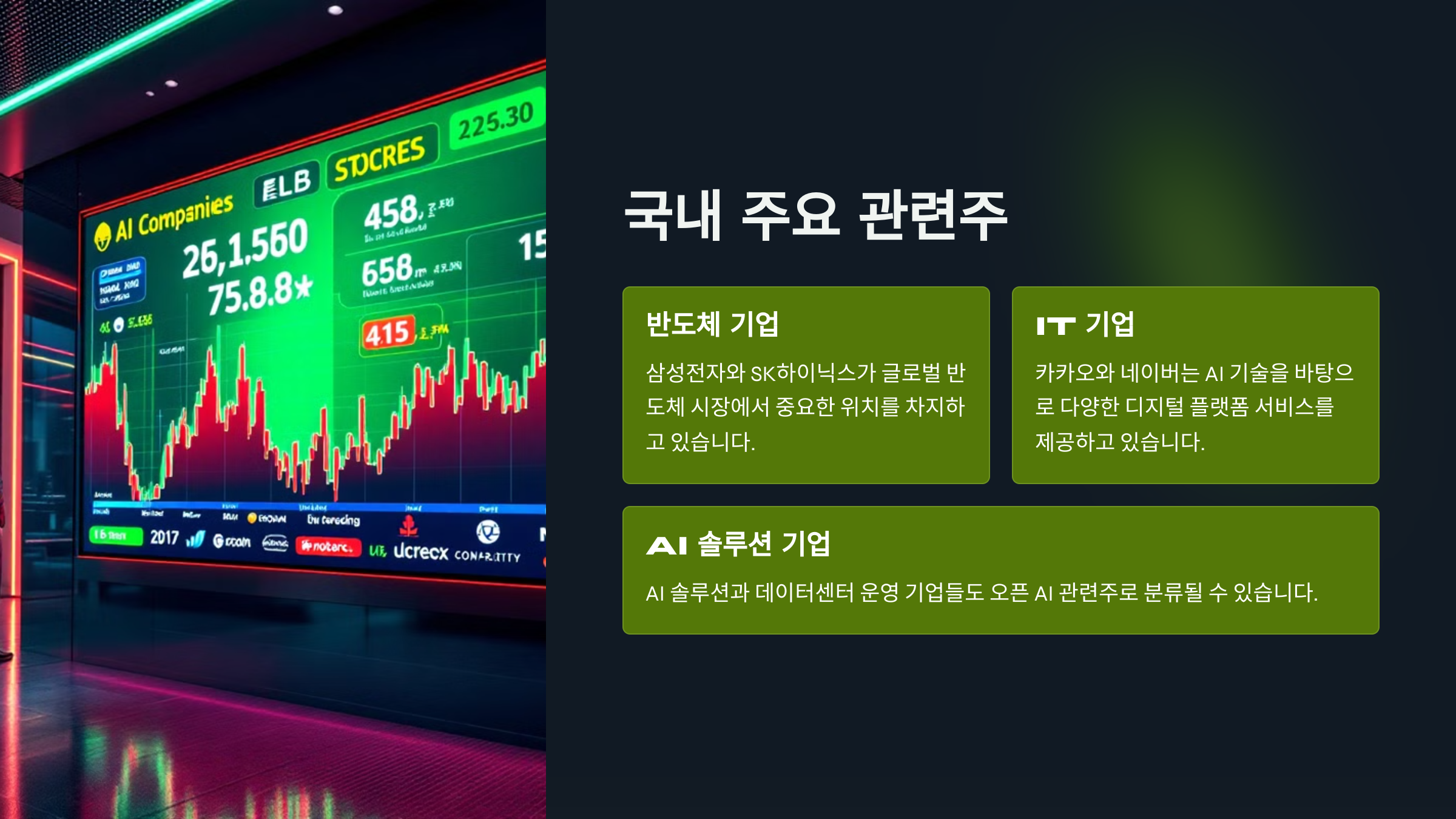 국내 주식 시장에서도 오픈 AI와 관련된 기술을 개발하거나 서비스를 제공하는 기업들이 주목받고 있어요. 예를 들어, AI 기술을 활용한 반도체를 생산하는 기업들이 이에 포함됩니다. 특히 삼성전자와 SK하이닉스는 글로벌 반도체 시장에서 중요한 위치를 차지하고 있어요.