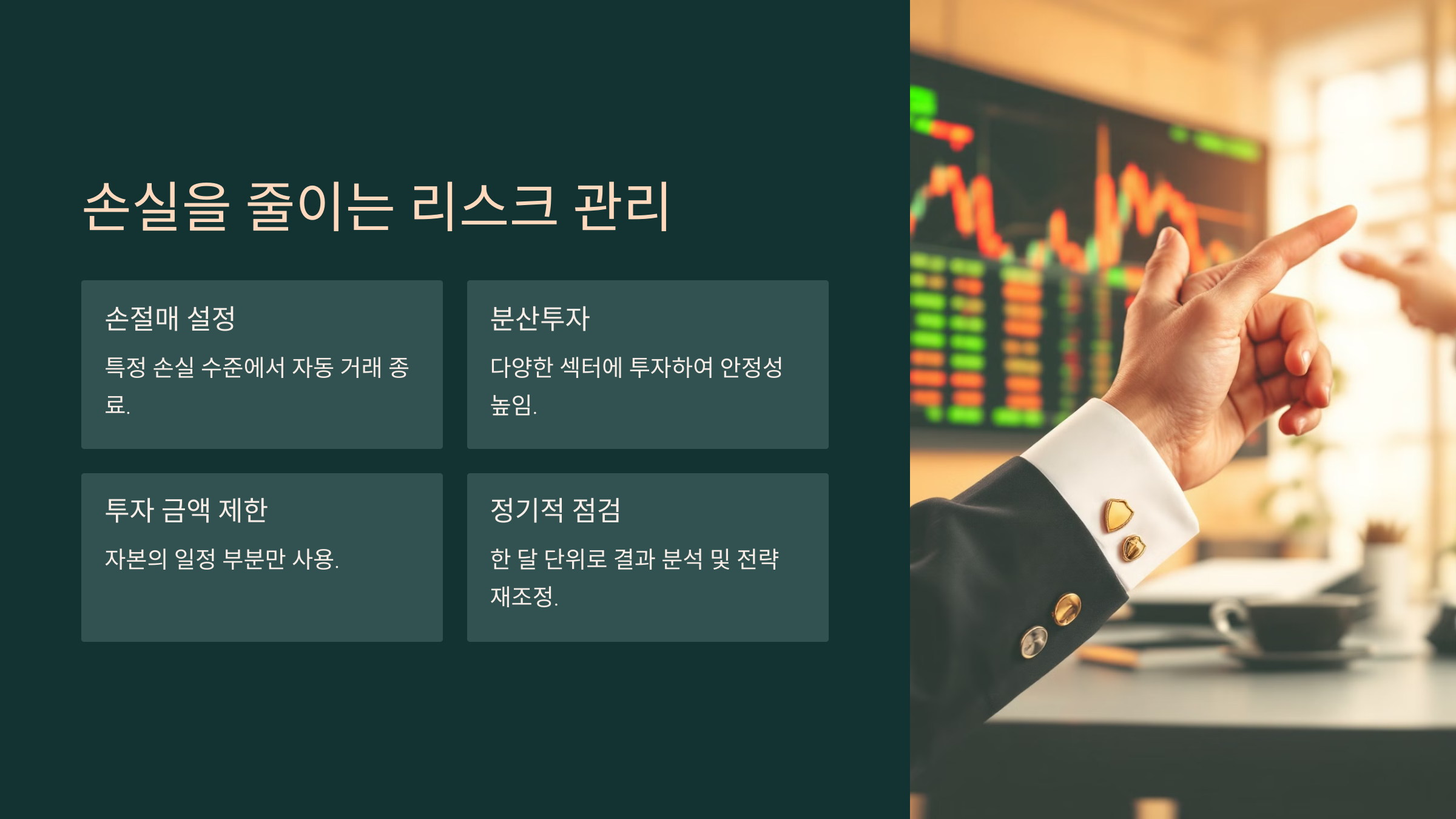 A4. 손실을 완전히 막는 것은 불가능해요. 하지만 리스크 관리와 철저한 설정으로 손실을 최소화할 수 있어요.
