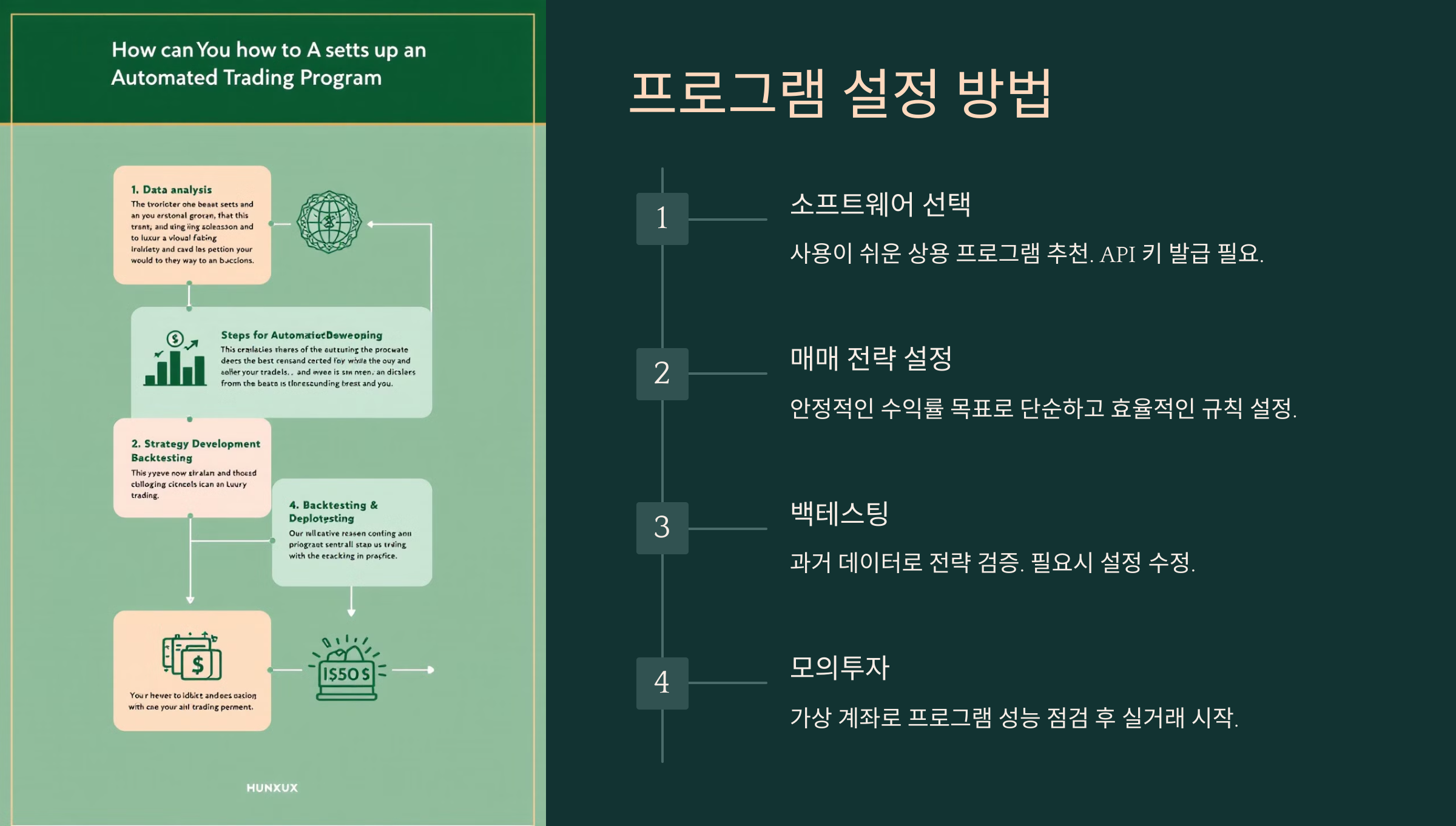 그렇지만 아무리 자동 매매 프로그램이 뛰어나다고 해도, 무조건적인 성공을 보장하지는 않아요. 중요한 것은 이 프로그램을 제대로 이해하고 설정하는 거예요. 그러기 위해서는 기본적인 작동 원리와 기능을 충분히 파악하고, 자신만의 투자 목표와 시장 조건에 맞게 조정할 필요가 있어요. 아래에서는 자동 매매 프로그램의 주요 개념과 설정법, 초보자들에게 추천할 만한 전략을 상세히 살펴볼 거예요.