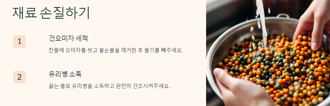 - 병이 깨끗해야 오미자청을 오래도록 보관할 수 있어요. 🌟