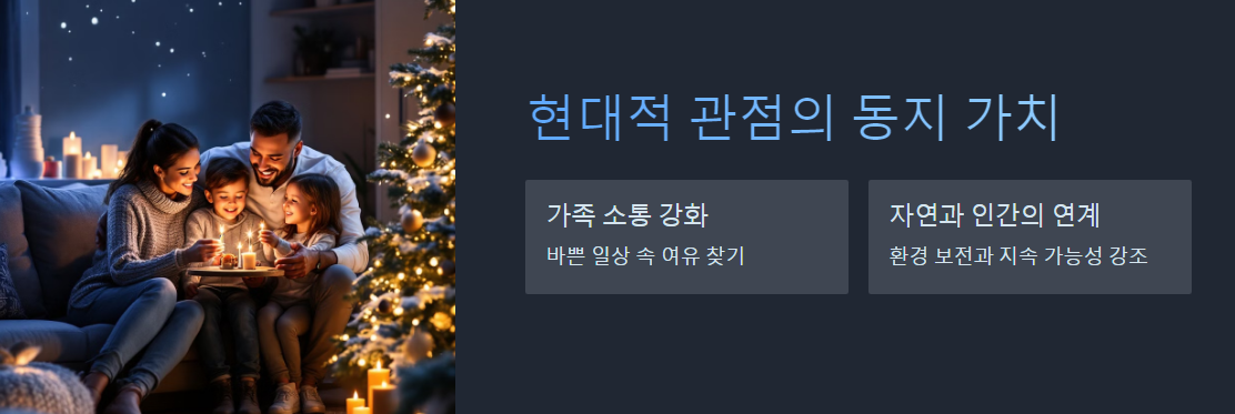 현대 사회에서는 동지를 전통과 현대적 가치가 공존하는 날로 바라보고 있습니다.