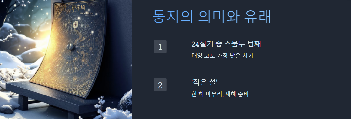 동지는 단순히 전통적 의미를 넘어 현대적 영감을 주는 날로 자리 잡아가고 있습니다.