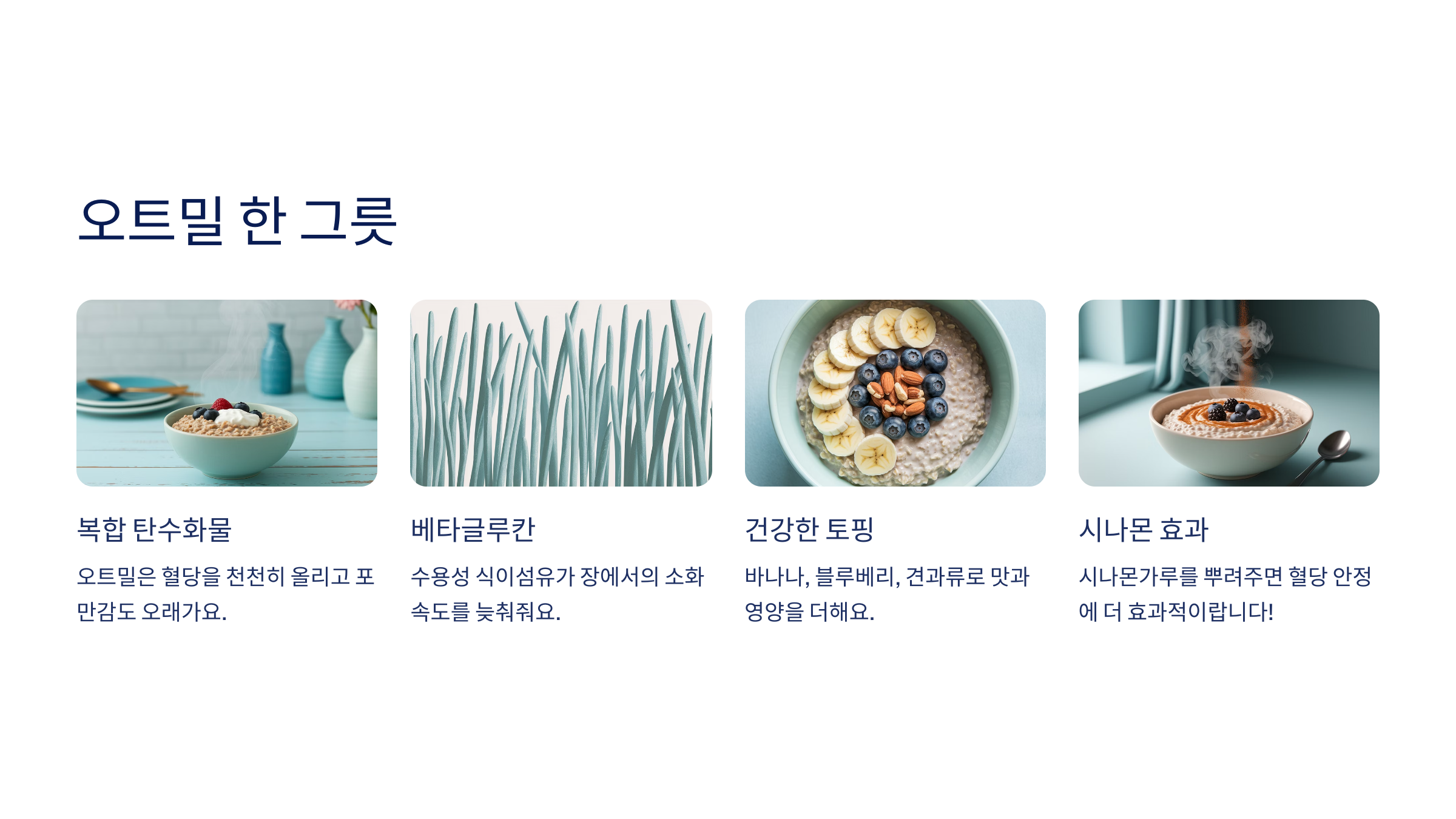 🥣 다음은 혈당에 좋은 아침 메뉴 첫 번째! 오트밀이에요!