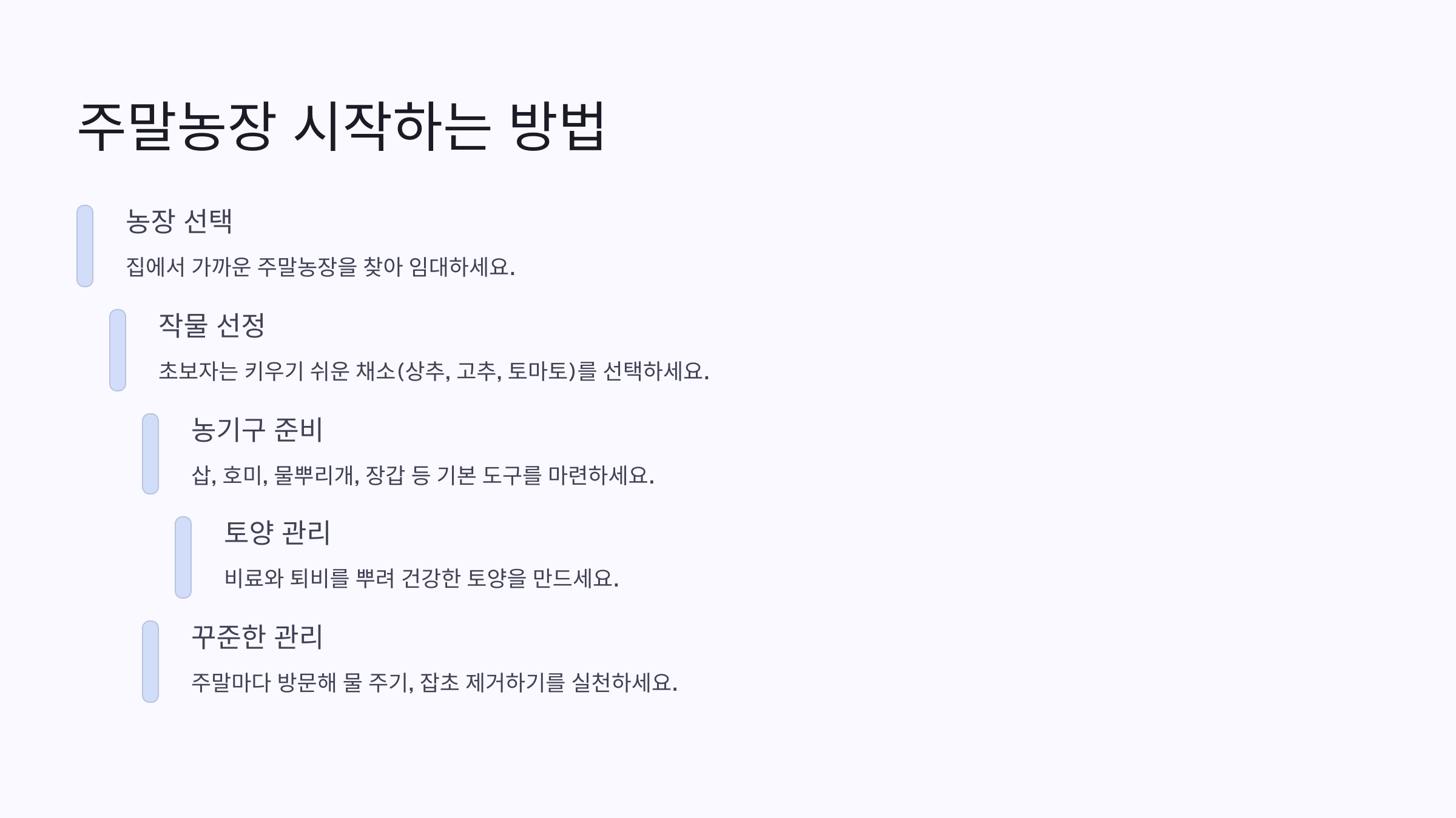 주말농장을 처음 시작하는 분들은 어디서부터 시작해야 할지 고민될 수 있어요. 하지만 걱정하지 마세요! 🥕 **아래 5단계**만 따라 하면 쉽게 시작할 수 있어요.