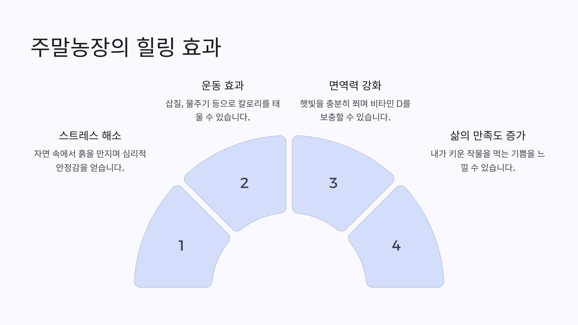 주말농장은 단순히 농작물을 기르는 곳이 아니에요. 🌿 **마음의 안정과 몸의 건강을 모두 챙길 수 있는 최고의 힐링 공간**이랍니다!