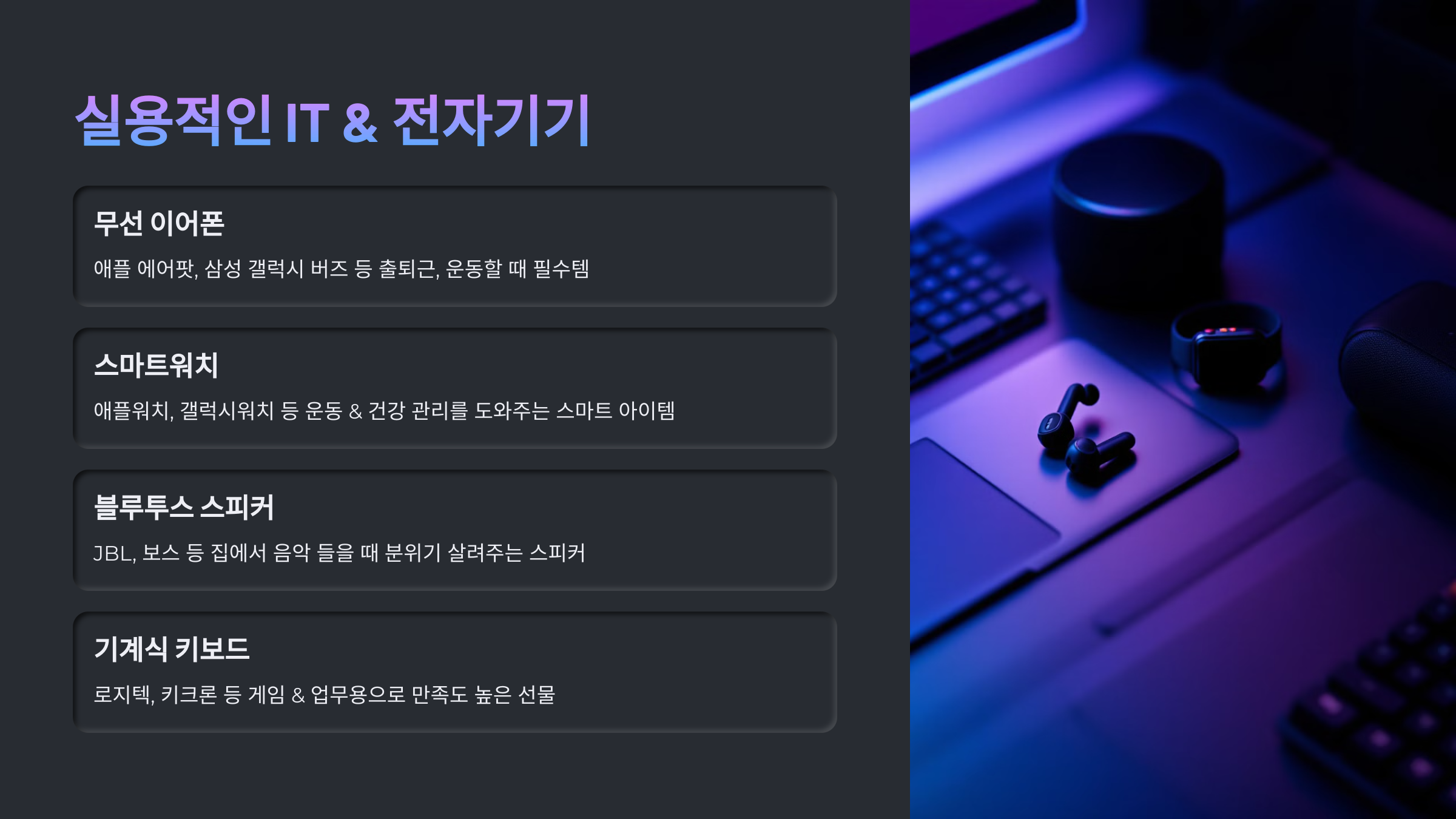 다음은 남자친구가 좋아할 실용적인 IT & 전자기기 선물을 소개할게요! 📱
