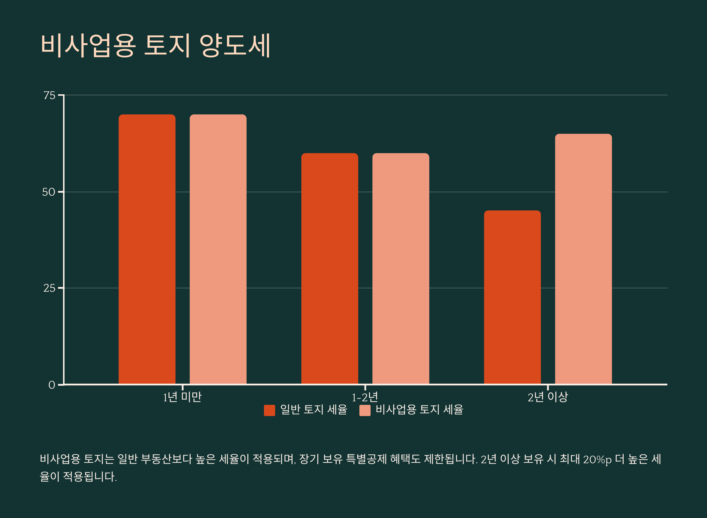 양도세는 기본적으로 보유 기간과 양도 차익에 따라 계산돼요. 하지만 비사업용 토지는 일반 세율에 추가 과세가 적용되기 때문에 세금 부담이 훨씬 커지죠. 예를 들어, 2년 이상 보유한 경우에도 일반 토지보다 최대 20%p 더 높은 세율이 적용돼요.