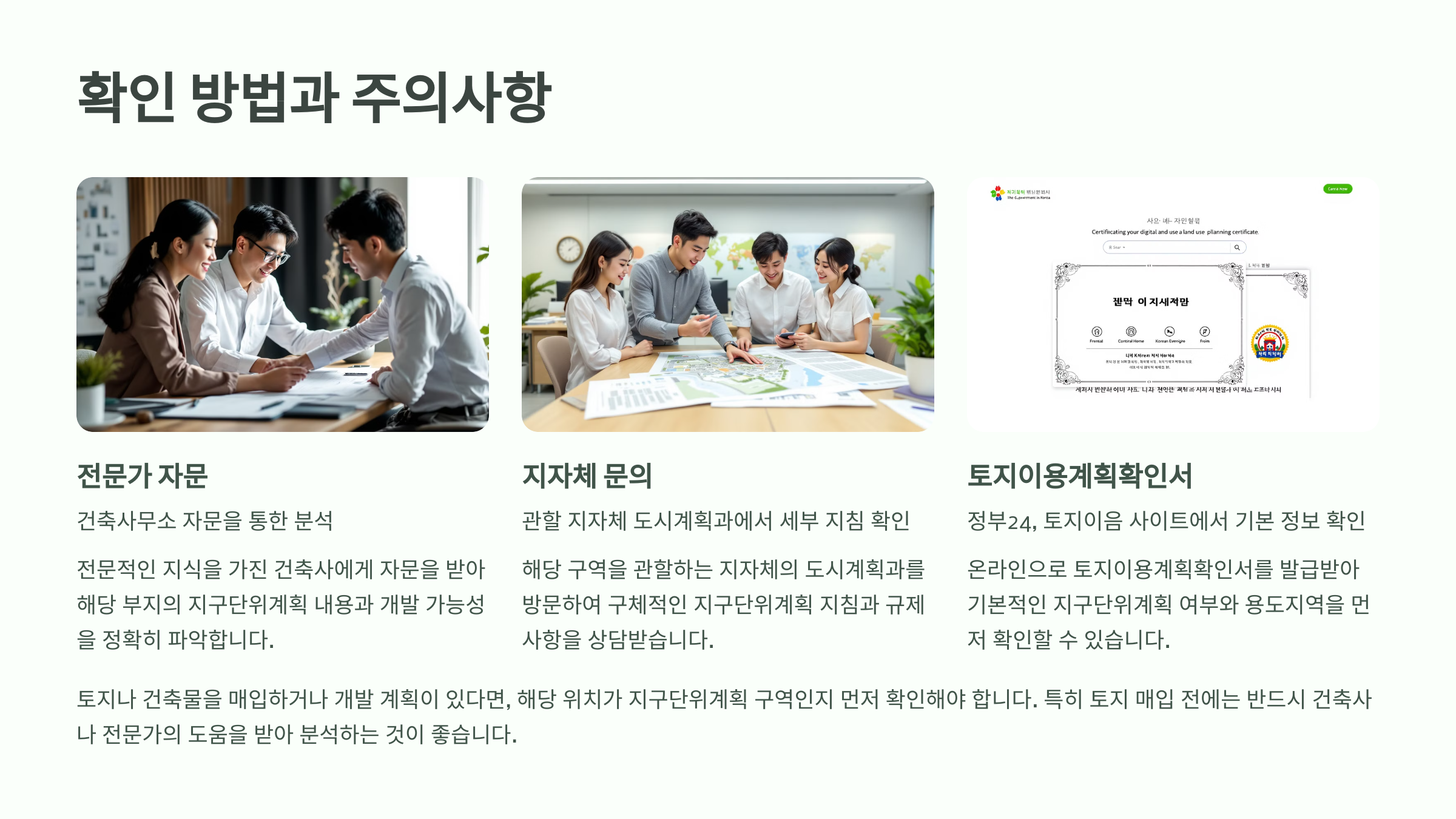 즉, 아무리 건축이 가능한 토지라도 지구단위계획구역에 포함돼 있다면 일반 건축 기준이 아니라, 따로 지정된 계획에 따라 건축해야 해요. 그렇기 때문에 해당 계획을 모른 채 건물을 지으려고 하면 허가가 나오지 않거나, 설계를 전면 수정해야 할 수 있어요.