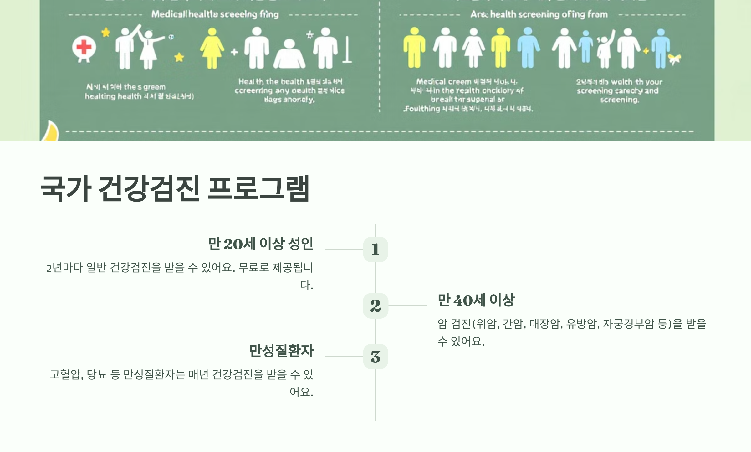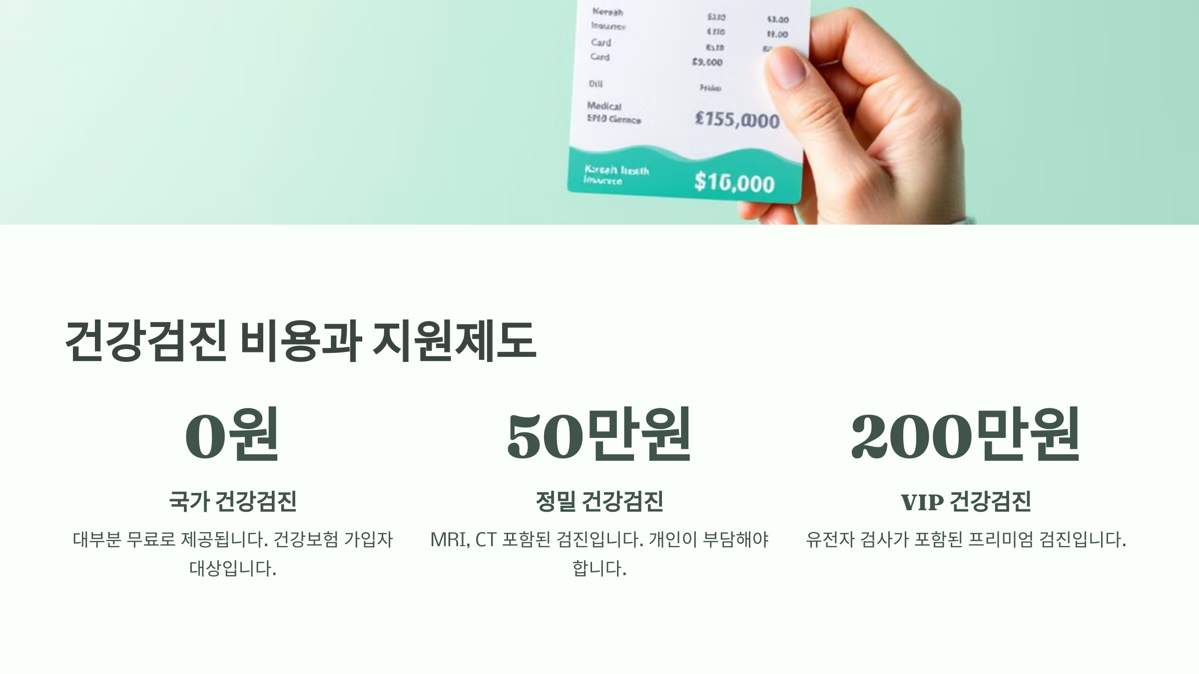 - ✅ 국가 건강검진: 무료 또는 소액 부담 (대부분 무료 제공)