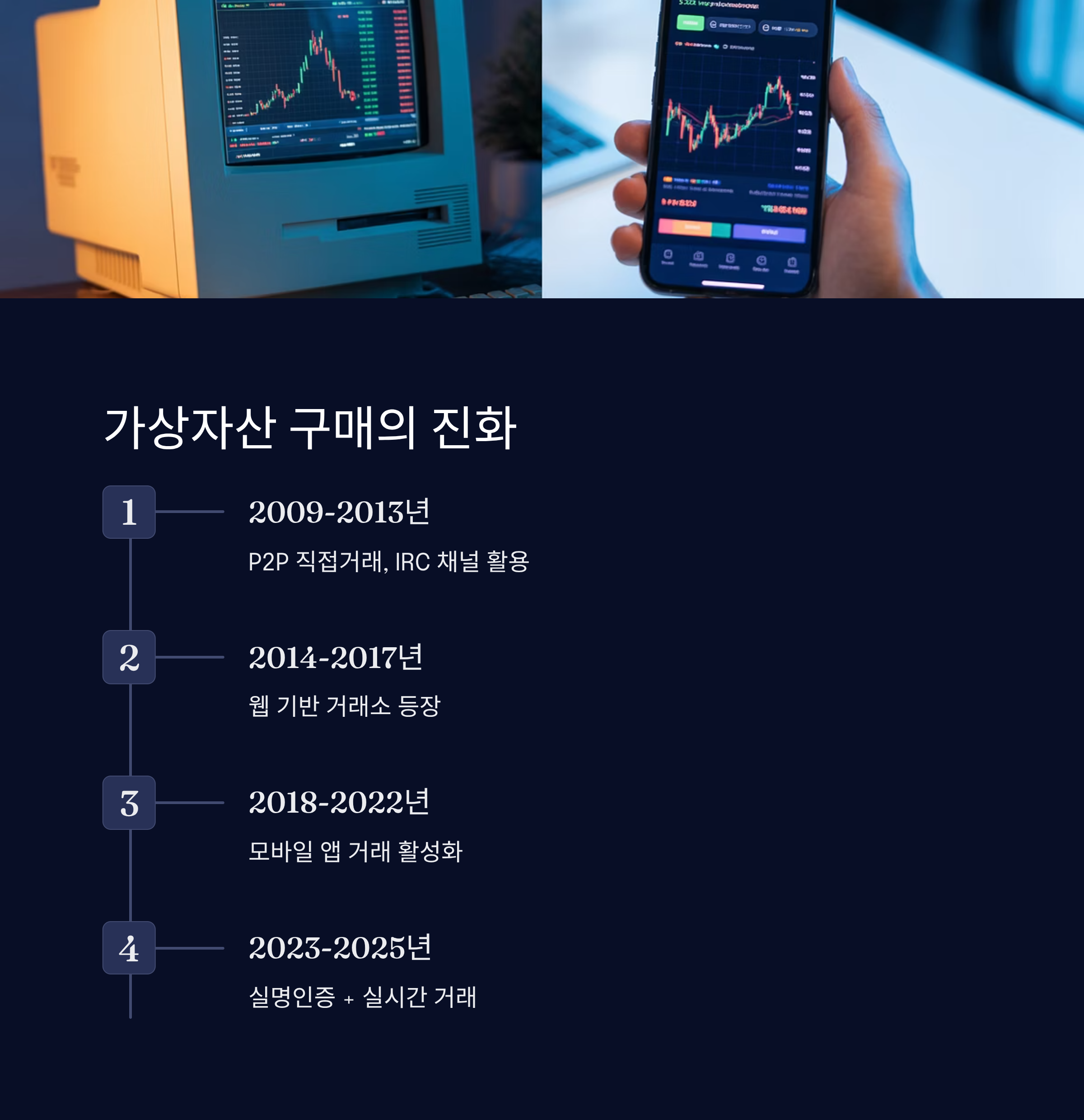 가상자산의 첫 등장은 2009년 비트코인의 탄생으로 시작됐어요. 당시에는 ‘디지털 돈’이라는 개념 자체가 생소했고, 구매 방법도 복잡했죠. 비트코인을 사려면 지갑을 직접 생성하고, 복잡한 개인키를 관리해야 했어요.
