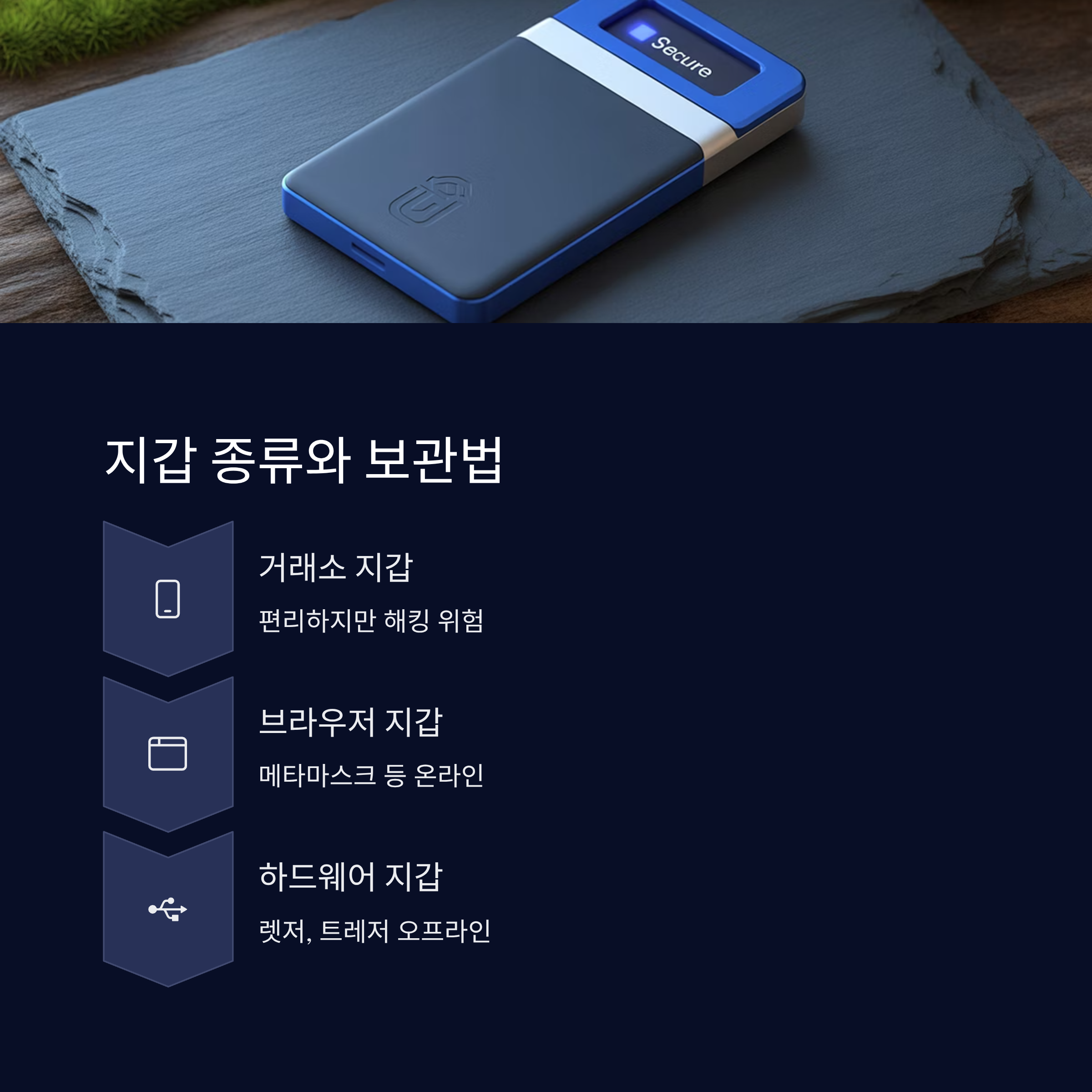 코인을 샀다고 끝이 아니에요. 자산을 안전하게 보관하는 게 훨씬 중요해요. 거래소에 그냥 두는 건 보관이 아닌 ‘위탁’에 가까워서 해킹, 거래소 파산 등의 위험에 노출돼요.