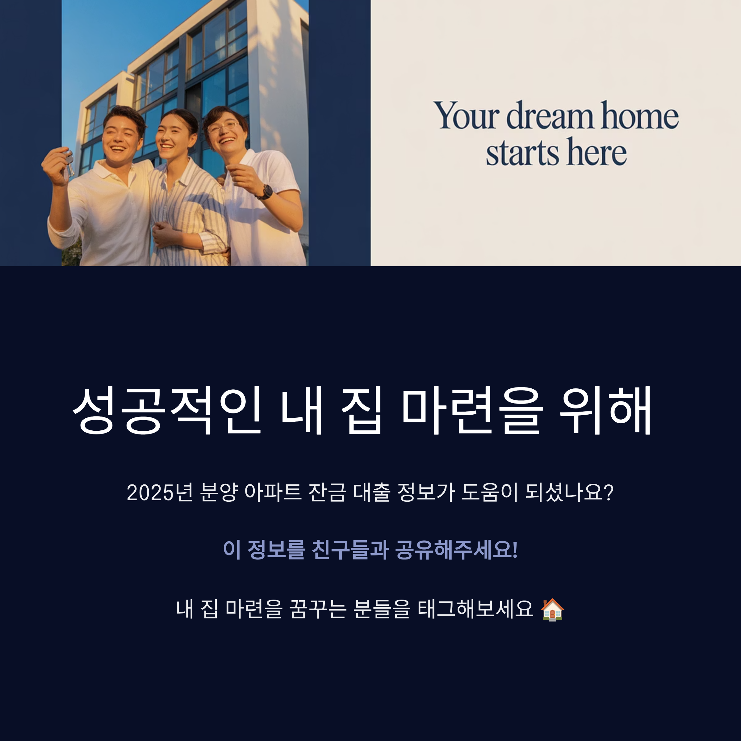 또, 분양받은 아파트의 시공사나 시행사가 특정 은행과 협약을 맺은 경우, 해당 은행에서만 잔금 대출이 가능한 케이스도 있어요. 이럴 땐 조건이 불리해도 해당 은행을 이용해야 하니, 분양 계약 시 받은 안내문을 꼭 다시 확인해보세요!