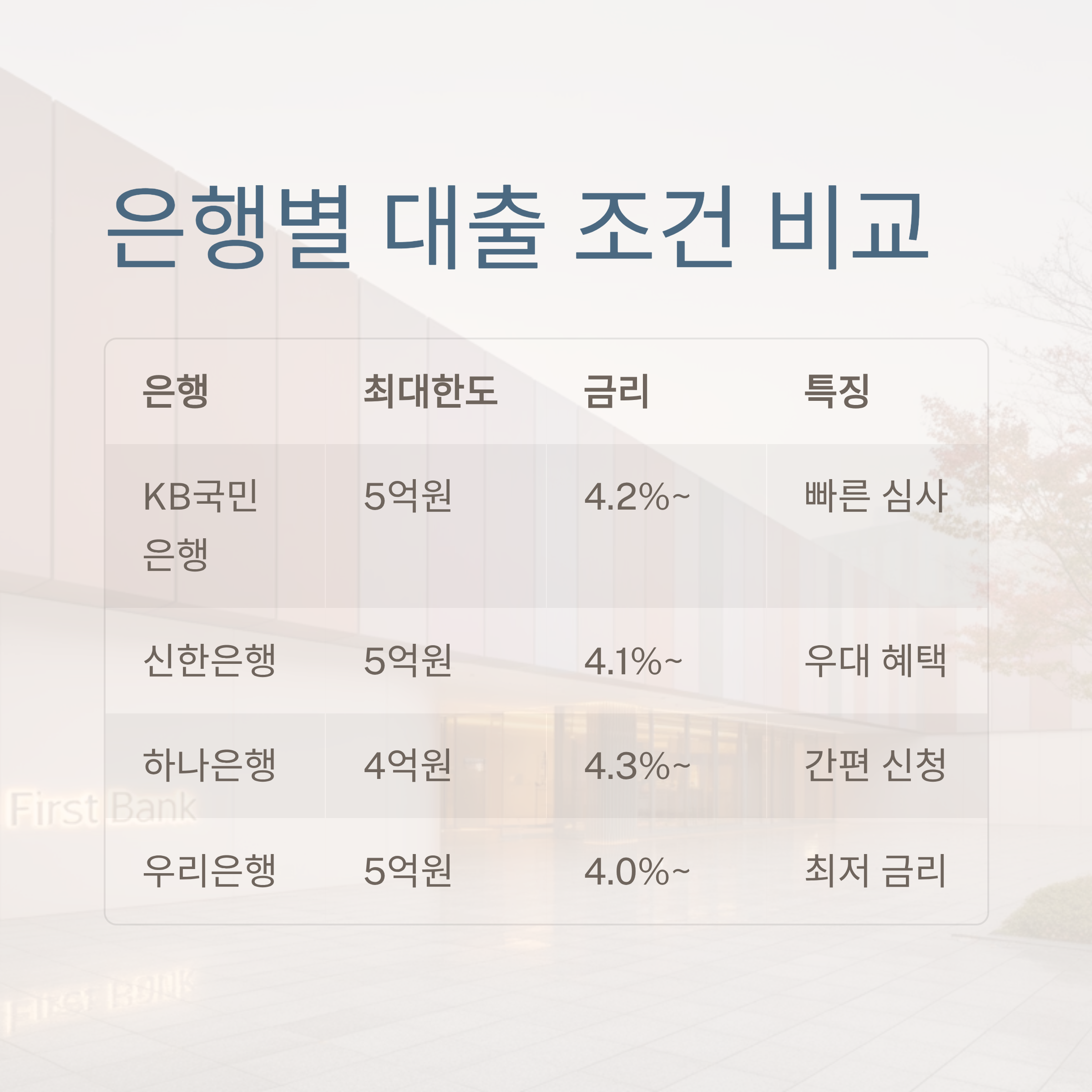 그리고 기존 거래 실적이 많은 은행은 추가 우대금리를 적용해주기도 해요. 주거래은행이 있다면 거기부터 먼저 상담해보는 게 유리할 수 있어요. 은행마다 숨은 혜택이 꽤 많답니다!