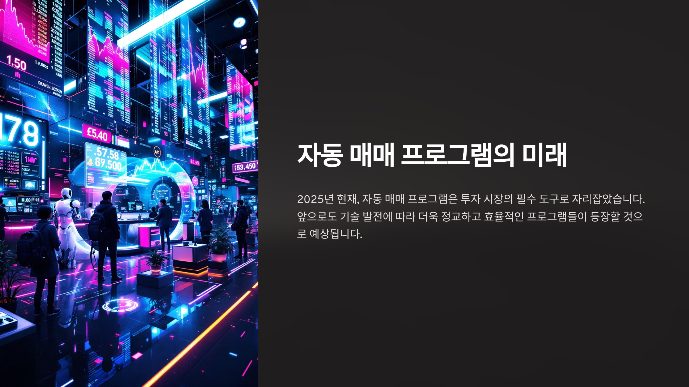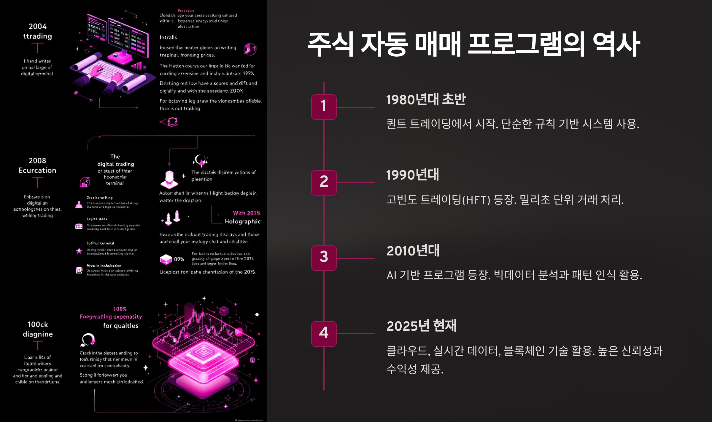 2025년 현재, 자동 매매 프로그램은 클라우드 컴퓨팅, 실시간 데이터 스트리밍, 블록체인 기술까지 활용하며 투자자들에게 더 높은 신뢰성과 수익성을 제공하고 있어요. 이러한 기술 발전은 개인 투자자들에게도 큰 기회를 제공하며, 과거보다 더 쉽게 접근할 수 있게 만들어 주고 있답니다.